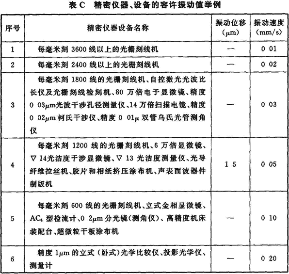 附錄C 精密儀器、設備的容許振動(dòng)值舉例:
