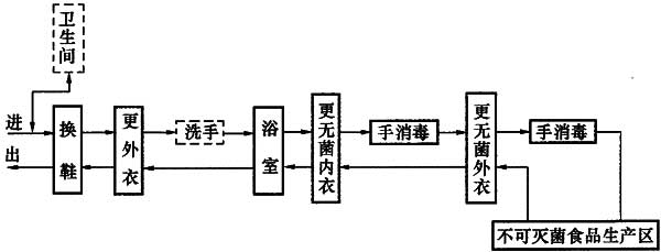 圖5.4.4 不可滅菌食品生產(chǎn)區人員凈化程序