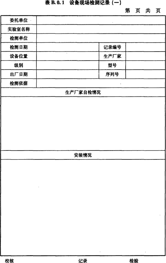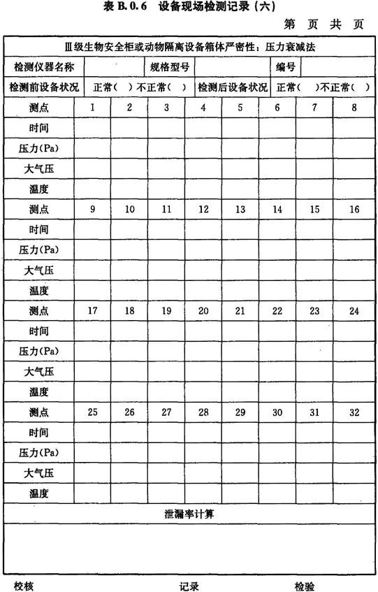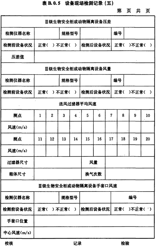 附錄B 生物安全設備現場(chǎng)檢測記錄用表