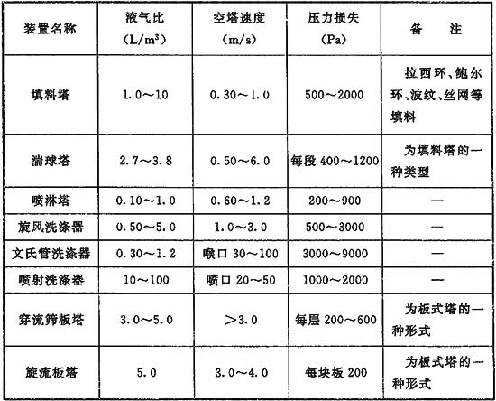 4、5 在可能的條件下,應盡量采用工廠(chǎng)的廢液(如廢酸、廢堿液)作為吸收劑。常用的吸收劑及其性能如下。